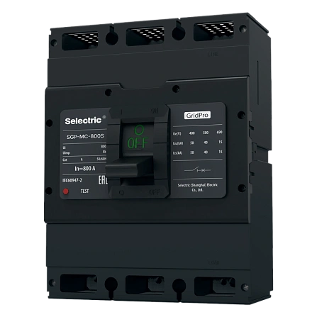 Выключатели SGP-MC с термомагнитным расцепителем поставляются в трехполюсном и четырехполюсном исполнениях и предназначены для защиты электрических цепей от перегрузок и коротких замыканий с фиксированными установками.